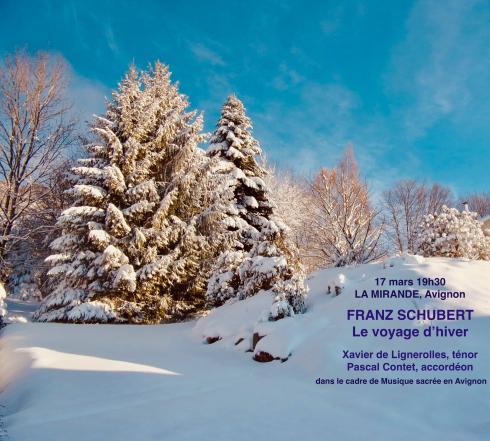 Xavier de Lignerolles sera en récital pour le cycle Winterreise (Schubert), avec l'accordéoniste Pascal Contet, le 17 mars à La Mirande (Musique sacrée et Orgue en Avignon), le 19 juillet au Château de Palaminy (31) (Les Nuits de Palaminy), le 07 novembre à Tourtouse (09) (Concerts Remp'Arts), le 14 novembre à l'Auditorium du Conservatoire d'Aurillac.