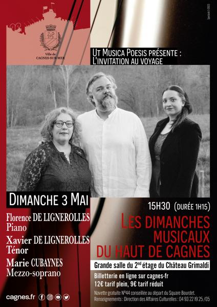Deux récitals sont à venir, avec la pianiste Florence de Lignerolles, dans le cadre des Dimanches Musicaux de Cagnes-sur-Mer, le 03 mai, et dans le cadre du Festival Déodat de Séverac, le 07 août.